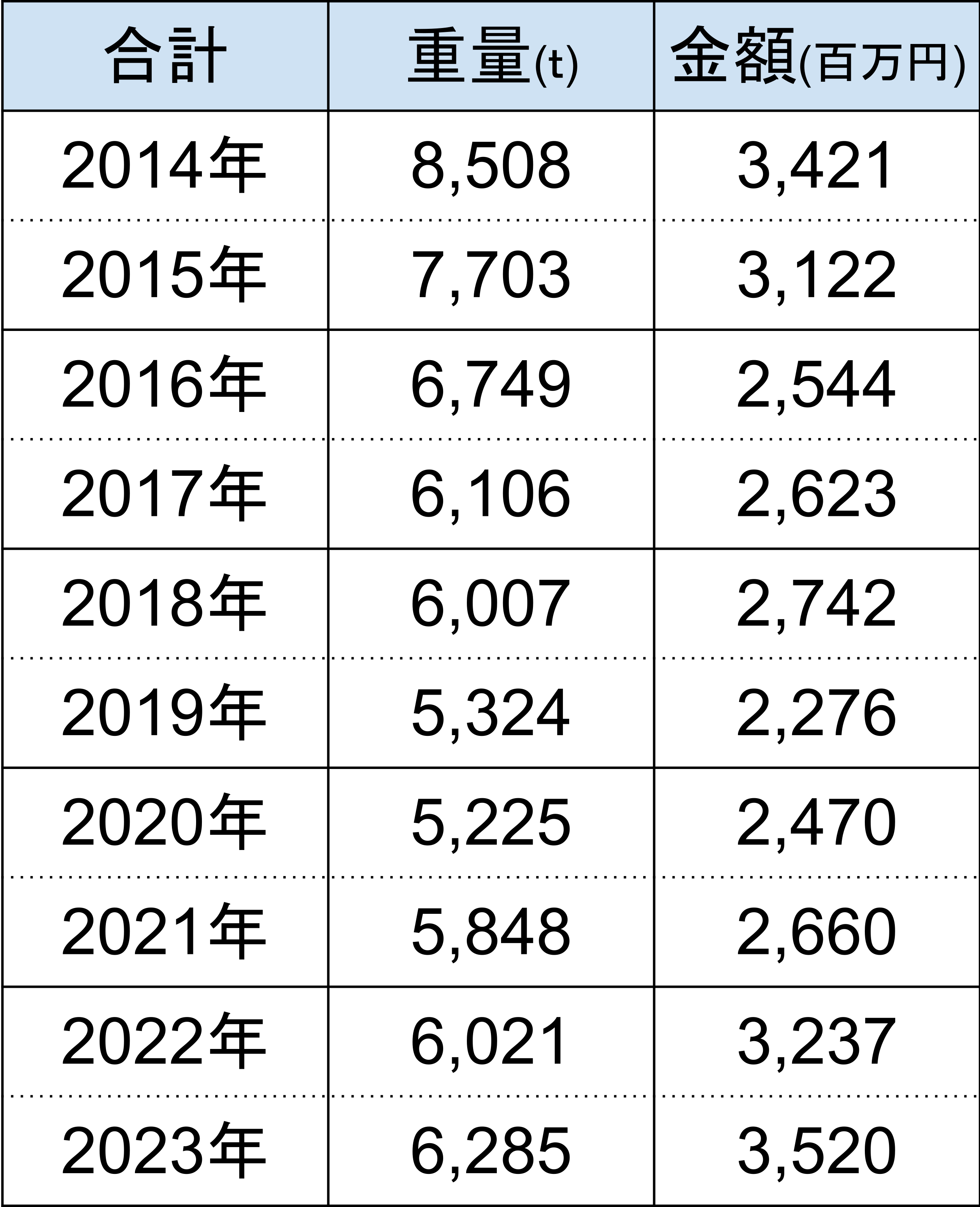 • 輸入アイスクリームの金額と重量(表)
