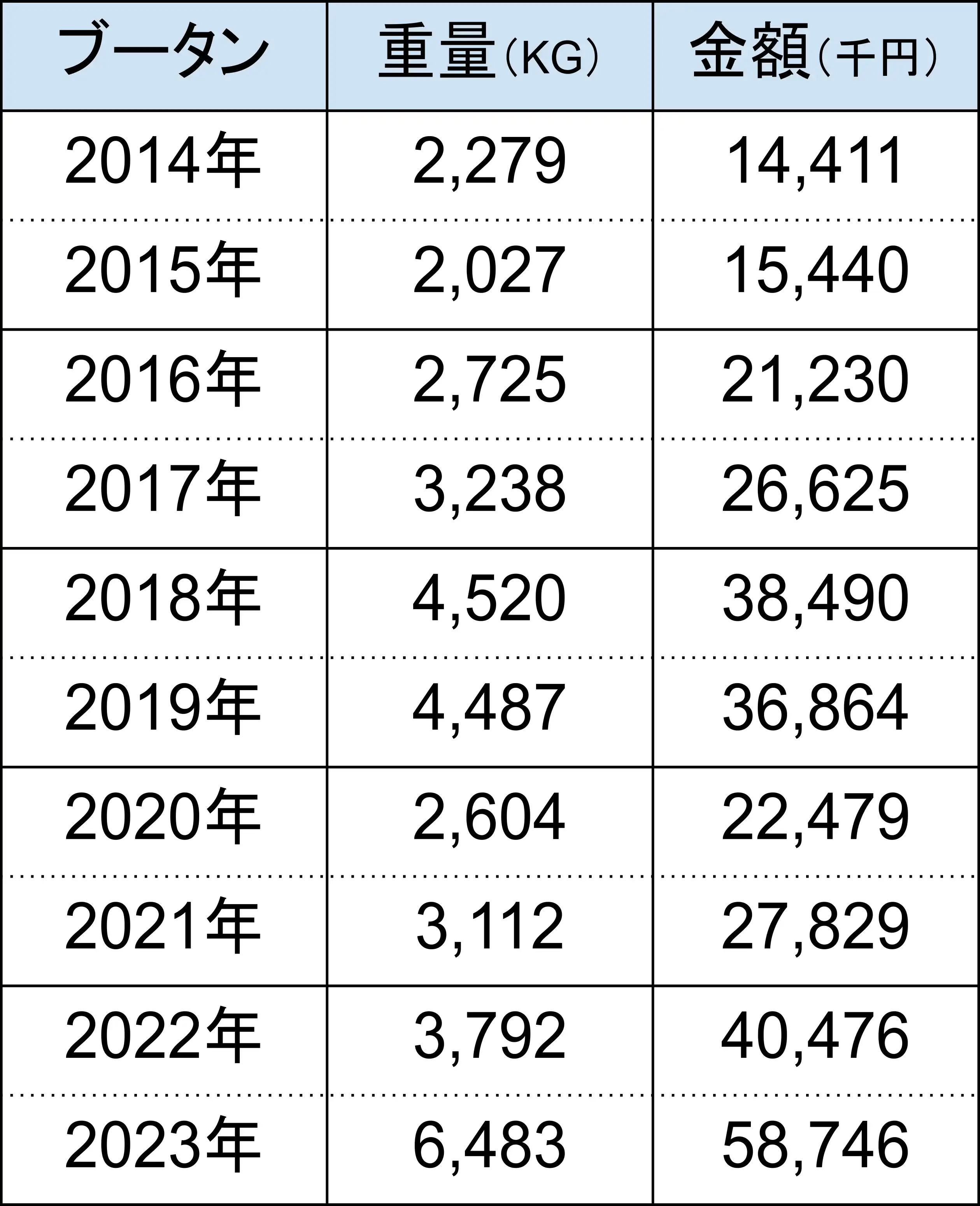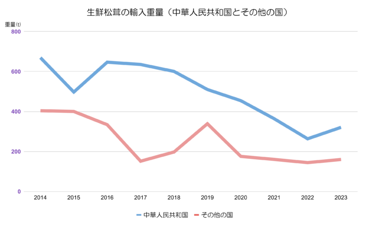 しかし、2023年に輸入量は上向いているものの、10年かけて輸入量は減少しています。