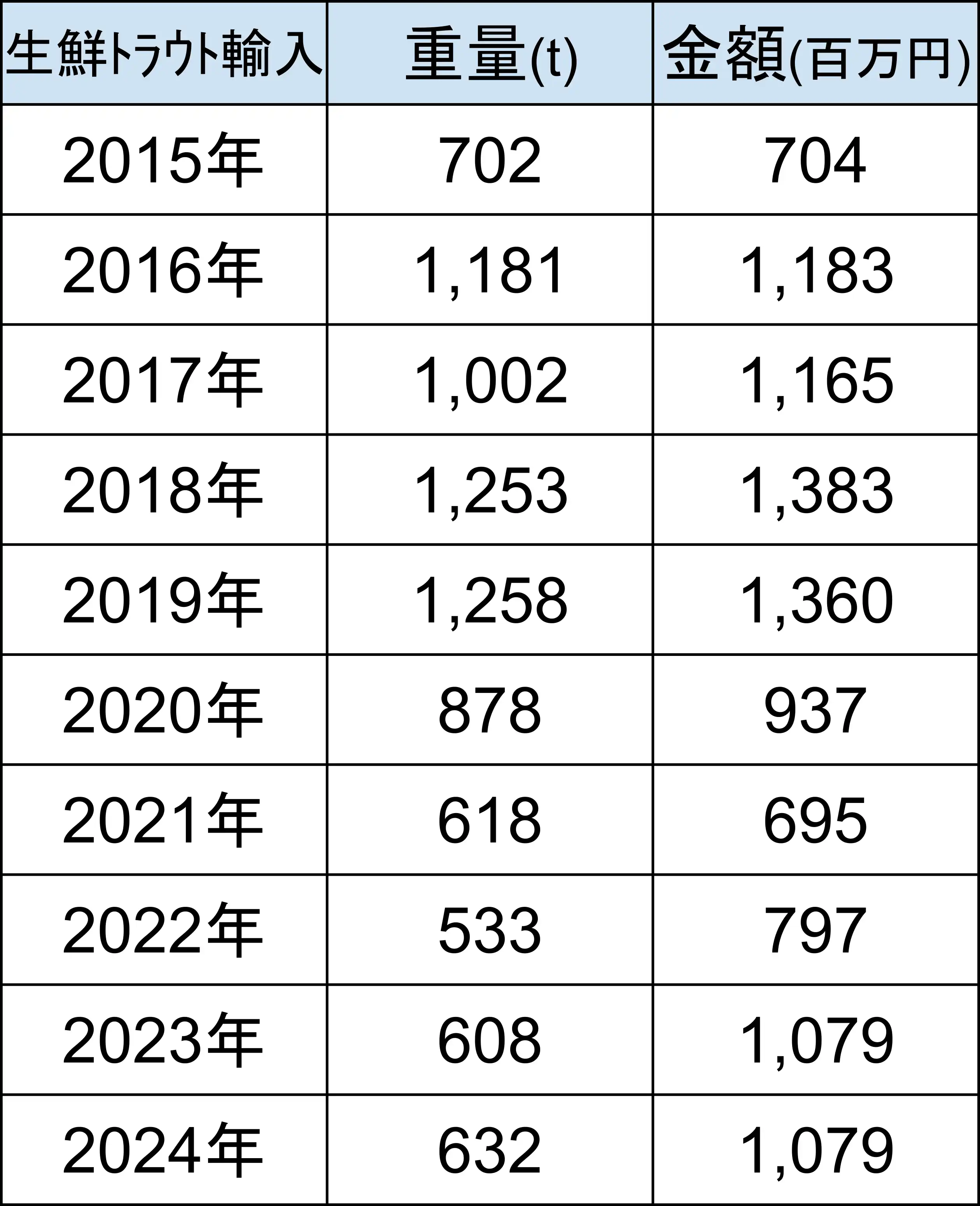 ✍生鮮トラウトの輸入状況と日本国内のニジマス養殖の状況